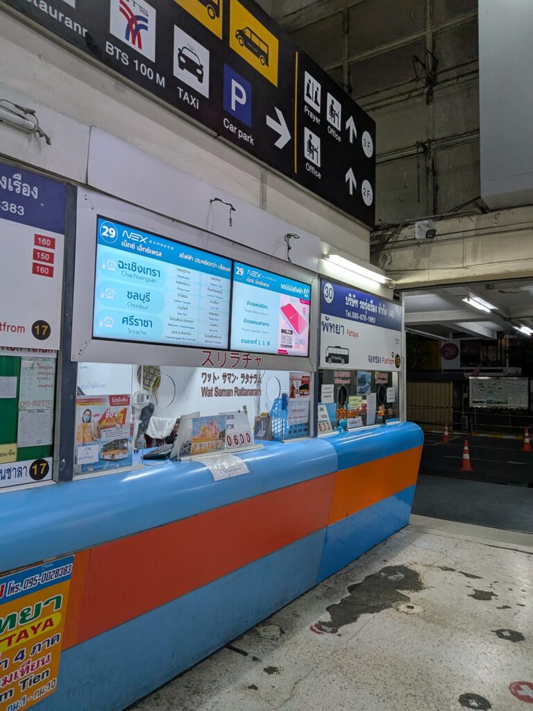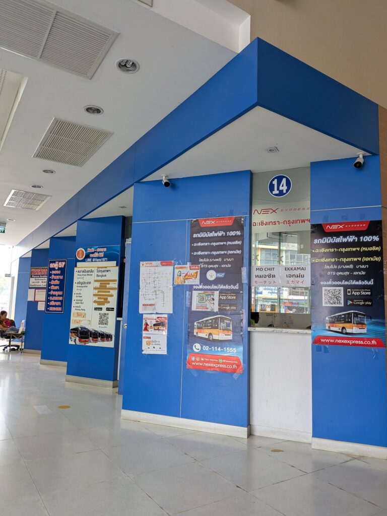 電車だと駅が宿から遠く、早朝からタクシーが捕まるのか?という不安があったので、BTSで2駅ほどの距離だったエカマイからのバス出発を狙いました。