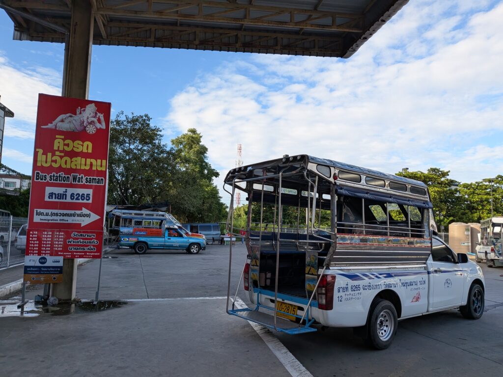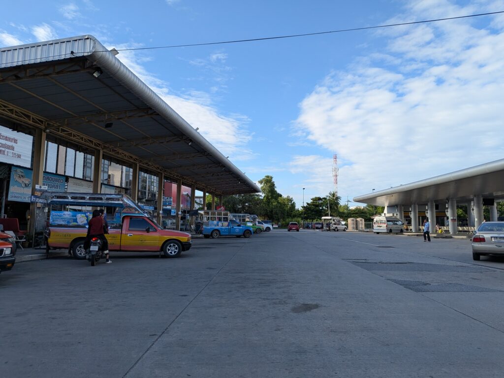 帰りのバスの始発が9:50だったので10分前くらいに戻って、無事に乗れて、結局10時ごろに出発。チャチュンサオのバスターミナルに着いたのが10:40だったのですが、まさかのというか、運悪くというか、想定内の最悪くらいでしたが、次のバスが12:00と掲示されていました、、!!