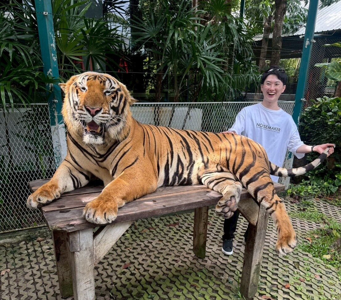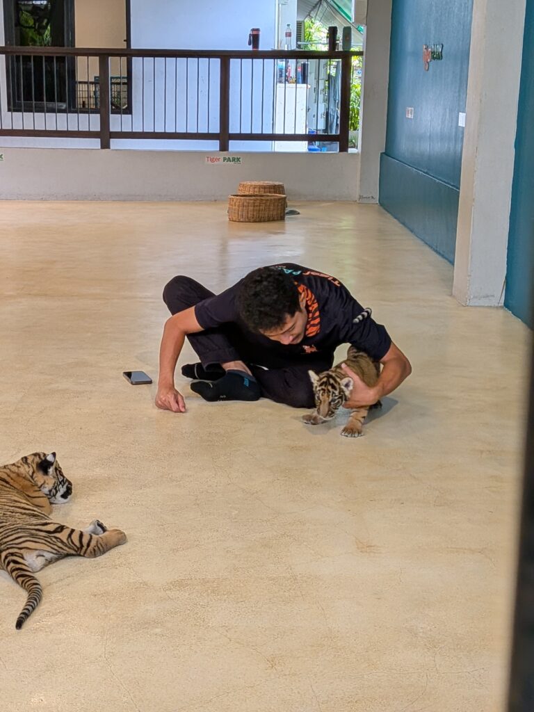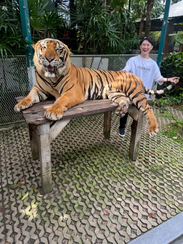一人旅ではなかなか行きづらい、タイガーパークという虎と触れ合える施設に行きました。