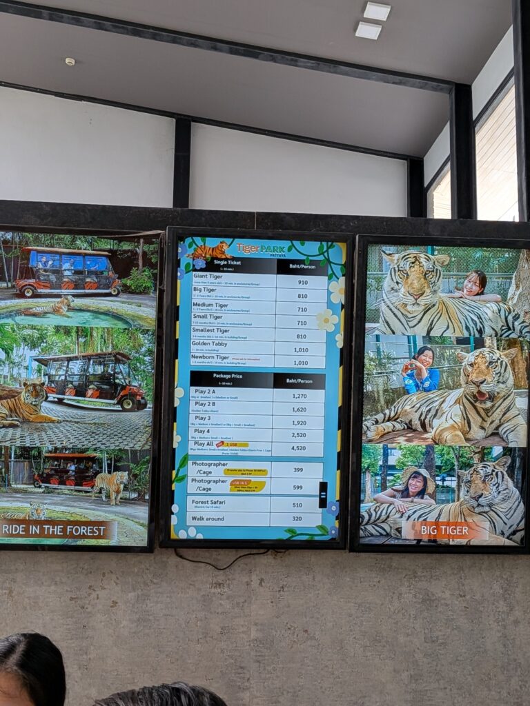 漢なら1番でかいやつや!と、ジャイアントタイガー(1人910バーツ)を選びましたが、赤ちゃんタイガーが可愛すぎたのでセットの方にすればよかったですw
