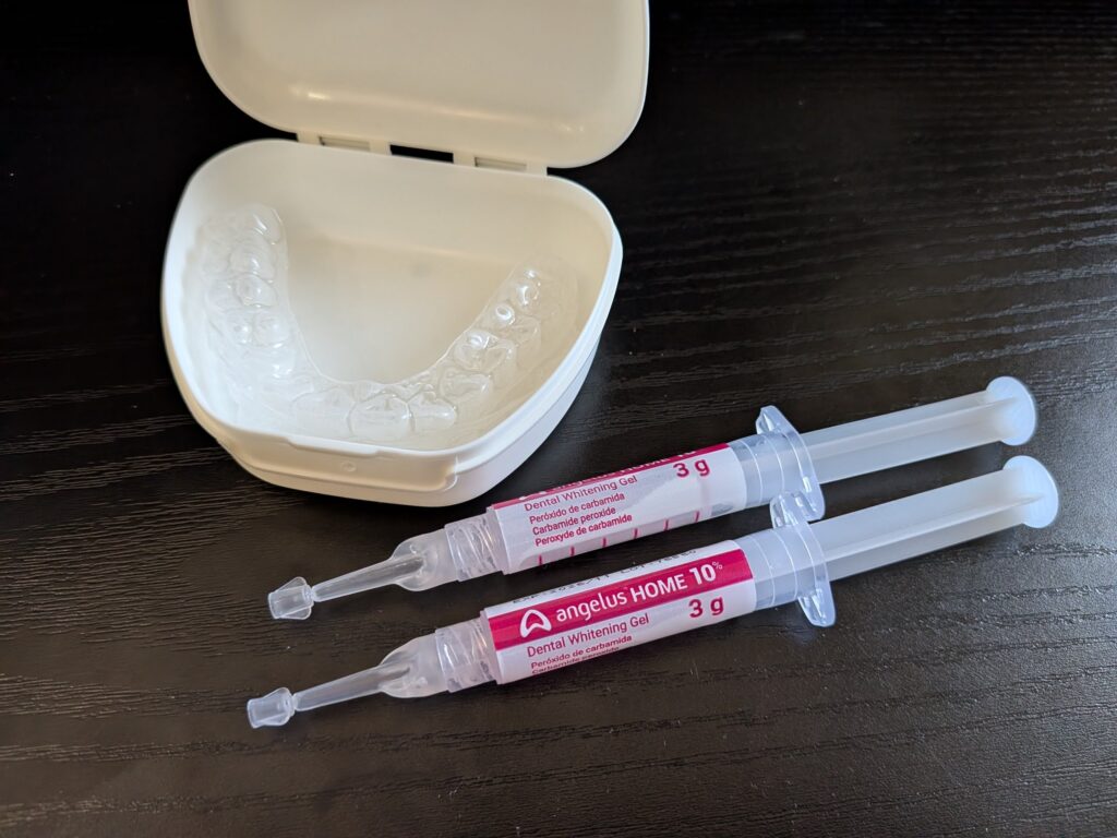 ただ、夕食後に歯磨きをして、マウスピースにちょこっとずつ注射器でホワイトニングジェルを乗せていって、そこから2時間も飲食禁止という一連の流れが結構めんどくさいです!!